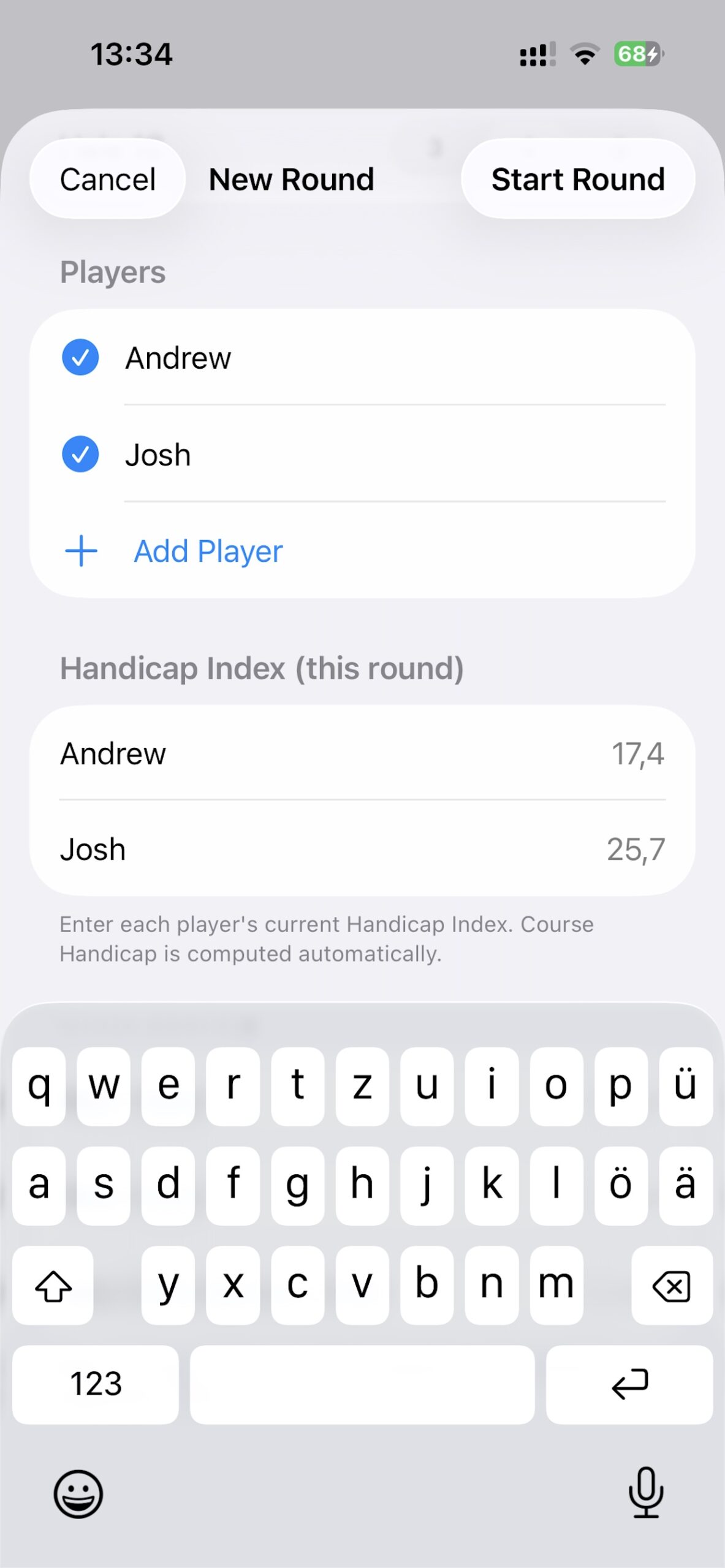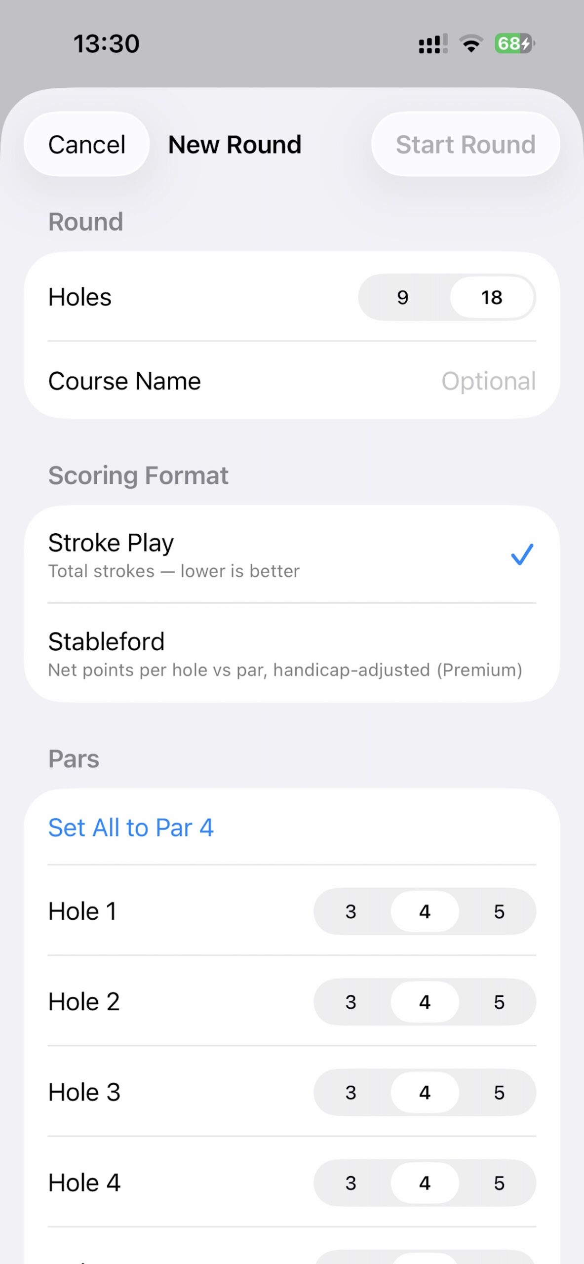No account required. Just start a round and play. All the data is stored locally on your device.